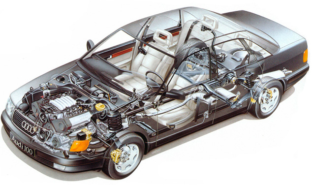 В зависимости от типа привода, “сотка” могла быть переднеприводной или с полным приводом на все четыре колеса. Наличие полного привода Quattro считалось значительным преимуществом, особенно в плане passivной безопасности. Однако данная система увеличивает эксплуатационные расходы. Требуется больше затрат на техническое обслуживание и, прежде всего, на топливо.