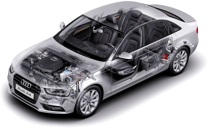 В арсенале Audi A4 B8 представлен широкий выбор двигателей: 1.8 TFSI (120 и 160 л.с.), 2.0 TFSI (211 л.с.), 3.2 FSI (265 л.с.), 2.0 TDI (120, 143 и 170 л.с.), 2.7 TDI (190л.с.) и 3.0 TDI (240 л.с.).
