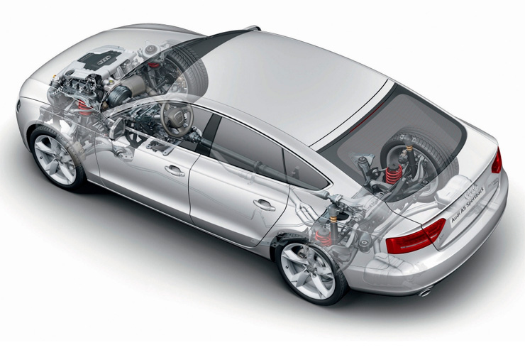 Подвеска Audi A5, как и полагается автомобилю премиум-класса, оснащена многорычажной системой как спереди, так и сзади.