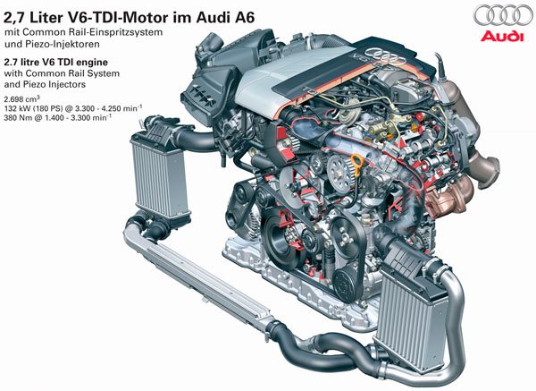 2.7 TDI – предшественник 3.0 TDI, оснащен системой впрыска Common Rail и цепным приводом ГРМ, наиболее надежен в дорестайлинговой версии.