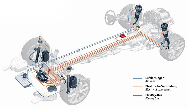 Некоторые модели оснащены регулируемой пневматической подвеской. Пневмостойки редко выходят из строя. Например, когда владелец забывает заблокировать их при замене колес. В MMI предусмотрена специальная функция для этого случая. К счастью, стойки можно восстановить. По мнению механиков, это не самый часто ломающийся элемент в А6 С7.