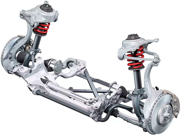 На первый взгляд передняя подвеска напоминает конструкцию из Audi A4. Однако здесь она адаптирована под другую геометрию, особенно под широкую колею – 1617 мм вместо 1564 мм. Также отличается подрамник, который стал шире. Были внесены изменения в заднюю многорычажную конструкцию.