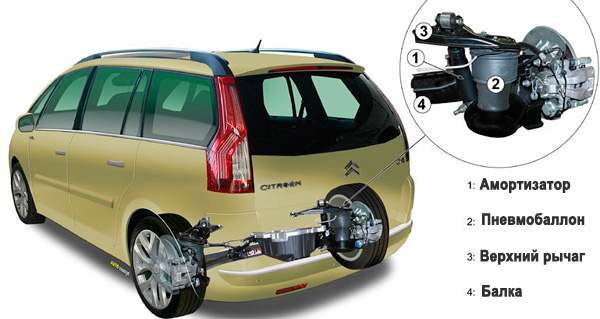 Ремонт пневматической подвески задней оси, которая присутствует в самых дорогих версиях, в том числе в удлиненном варианте Picasso, обходится значительно дороже. Это нивомат, включающий блок управления, компрессор, два датчика клиренса и пневмоэлементы, которые являются наиболее уязвимым местом. За два баллона из Китая придется заплатить более 10 000 рублей, а оригинальный элемент обойдется в 17 000 рублей.