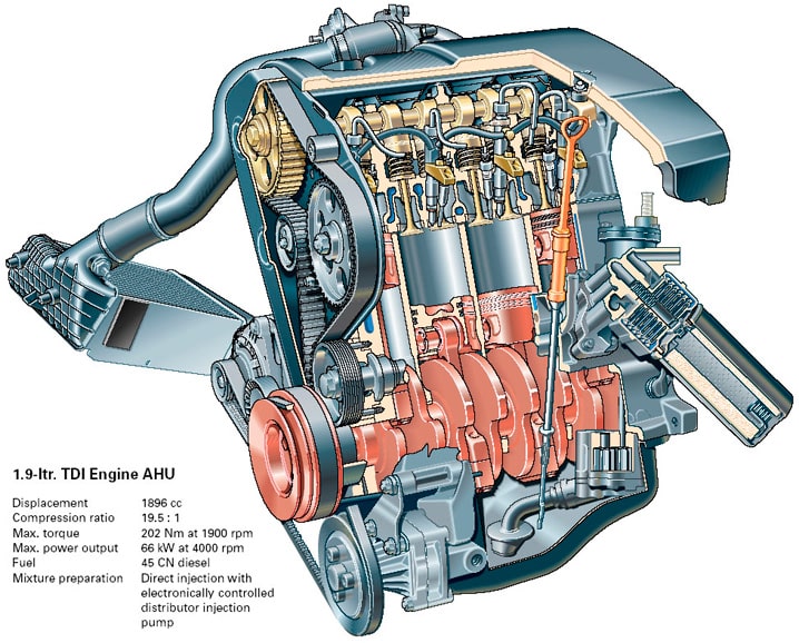 1.9 TDI был создан на основе 1.9 TD. Основные отличия: новая головка и система питания. Прямой впрыск топлива с ТНВД – ключевой элемент для повышения эффективности.