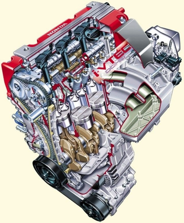 Система i-VTEC отвечает за управление газораспределением. В зависимости от версии, она контролирует только впускные клапаны (150-160 л.с.) или и впускные, и выпускные (200-201 л.с.).
