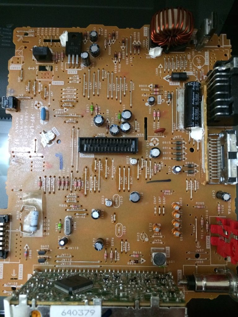 В некоторых случаях вы можете обнаружить внутри дискретные усилители, они могут быть своего рода транзисторным массивом или H-мостом. Я ищу усилитель класса AB, потому что не вижу ни одной выходной фазы фильтрации, ни одного индуктора или большого электролитического конденсатора (кроме одной из 12-вольтовых батарей), которые характерны для усилителей класса D.