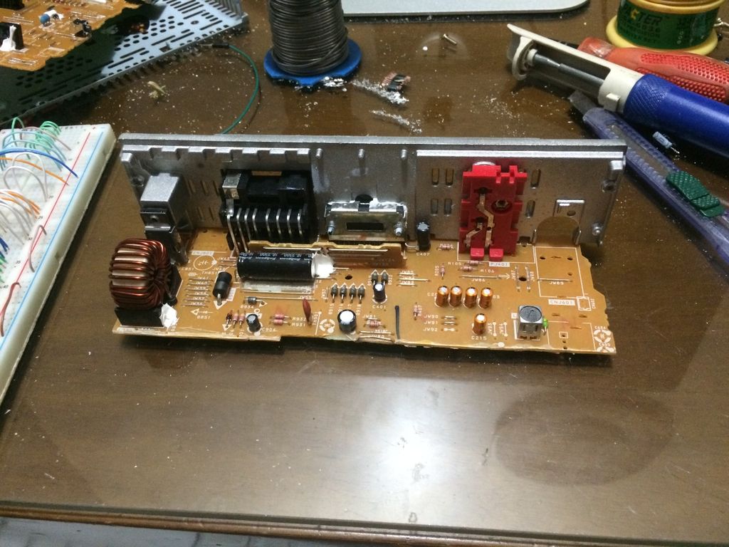 Большую часть времени и усилий я потратил на выяснение принципов работы автоусилителя, собранного своими руками. После этого модификации просты и минимальны. Некоторые провода не работали, я добавил несколько перемычек. Единственная дополнительная деталь — это обычный 12в зарядник, который может дать питание нескольким усилителем, собранным из разного хлама.
