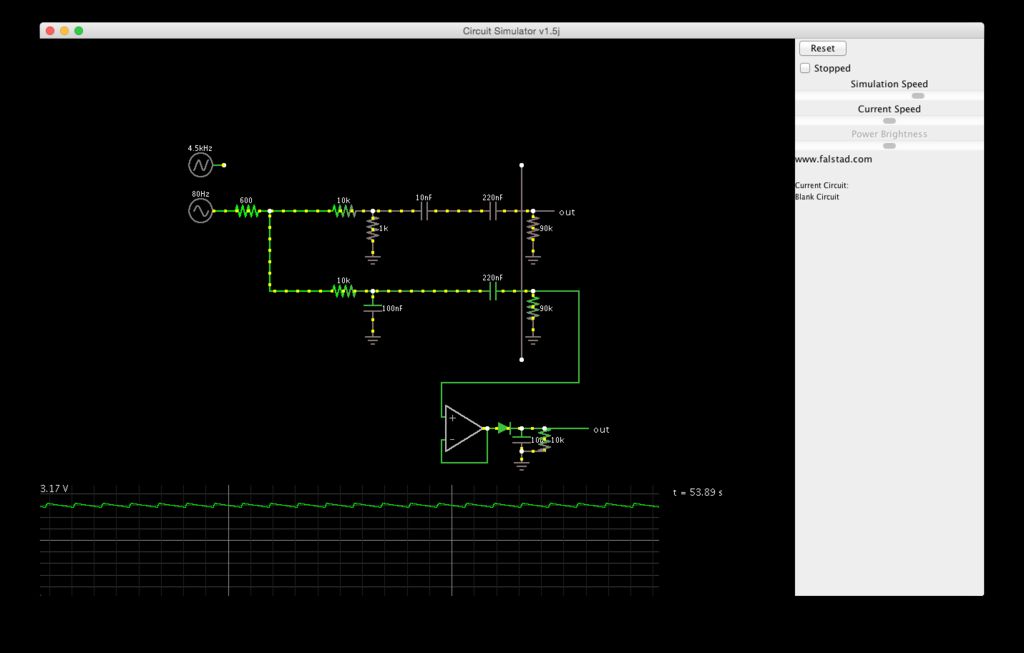 Фильтр нижних частот состоит из простого РЦ фильтра, который даст выкат из -3 дБ на октаву с частотой среза fc = 79.5774715459 [Гц]. Параллельно подключается резистор 10к с 2 керамическими конденсаторами на 100 нФ.