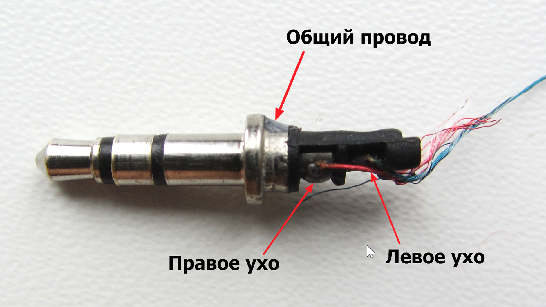 Эта картинка еще доступнее объясняет, куда припаивать провода к штекеру наушников: