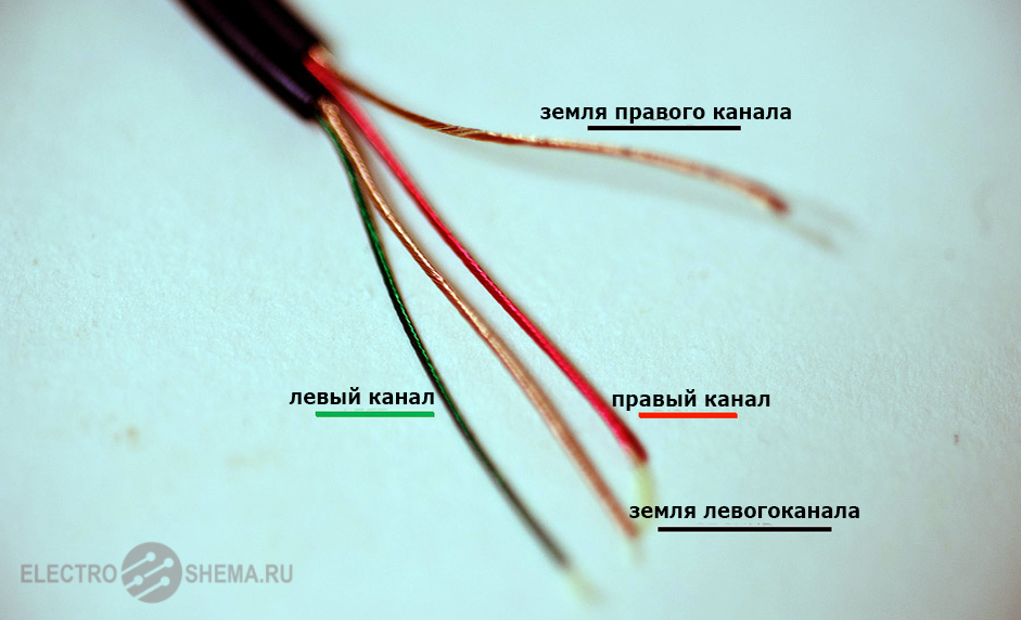 В зависимости от варианта реализации, внутри кабеля от гарнитуры может быть 5 и более проводов. Вплоть до 10! Как бы там ни было, а сигнальный провод от микрофона всегда стараются делать в собственной “земляной” оплетке.