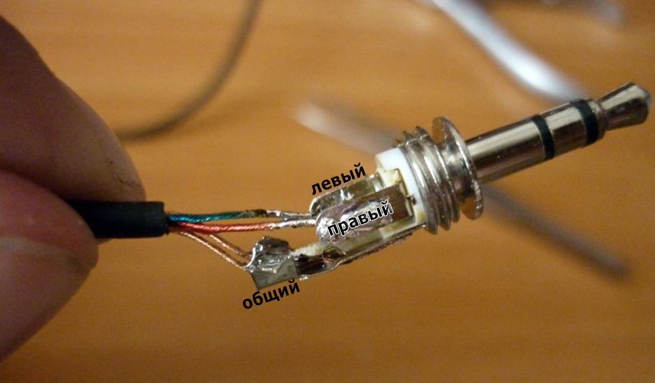 или даже так:то никто вам так сразу не скажет, как правильно припаять штекер к таким наушникам. Тут может быть только один совет: берите тестер и прозванивайте все провода, пока не определите, где правое ухо, где левое. Остальные провода — это к микрофону.