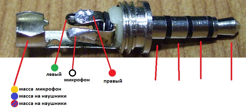 Распиновка штекера и гнезда на 3.5 мм под наушники с микрофоном