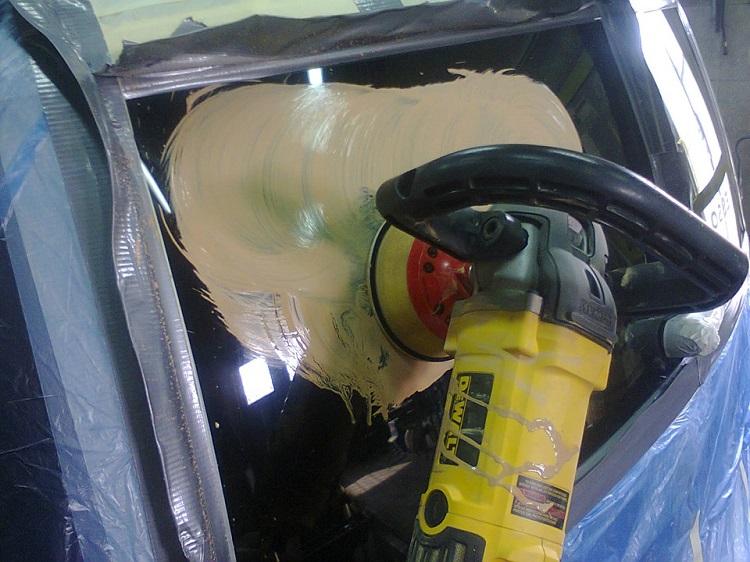 Перед шлифовкой царапин и потертостей стекло нужно очистить от загрязнений и битумных пятен.