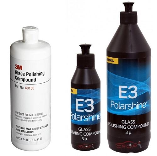 Для качественной полировки необходима специализированная абразивная паста, а не средства, создающие лишь поверхностный блеск. Рекомендуем E3 Glass Polishing Compaund от Mirka и 60150 Glass Polishing Compaund от 3M. Цена пасты 3M № 60150 в упаковке 1 литр составляет около 100 долларов. Учтите дополнительные расходы на абразивные материалы, возможно, стоит задуматься о замене стекла. Для полировки автомобильных стекол используйте E3 Glass Polishing Compaund и технологии Mirka.