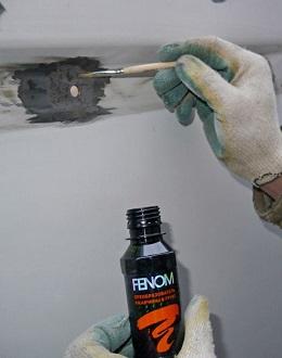 - Нанесите средство на поврежденный участок металла. Если вы используете жидкость во флаконе, то для нанесения можно использовать чистую ветошь, намотанную, к примеру, на отвертку.
