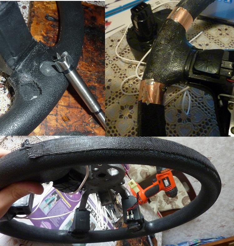 Самый простой способ, который приходит в голову при изготовлении теплого руля, — взять проволоку или провод и намотать вокруг обода руля. Проволока, являясь проводником, при прохождении через нее тока начинает греться и отдавать тепло.