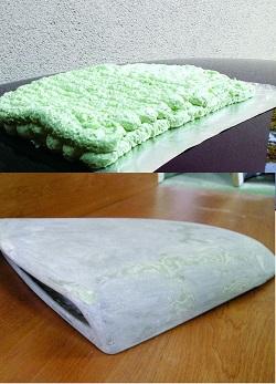 - Накладывайте листы стеклоткани с перекрытием 1,5-2 см, тщательно промачивая каждый слой полиэфирной смолой. Не забывайте о сушке между слоями. Для ровной поверхности после высыхания смолы слегка отшлифуйте неровности и места перекрытия, располагая их в разных местах.
