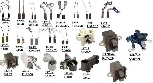 Материалы щеток: Щетки генератора обычно изготавливаются из углерода или графита, иногда с добавлением меди для улучшения проводимости. Это позволяет щеткам эффективно передавать электрический ток и уменьшать износ как щеток, так и коллекторов.