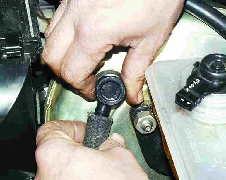 - Отсоедините вакуумный шланг от обратного клапана. Проверьте клапан и установите его на новый усилитель тормозов.