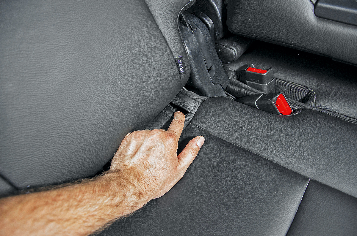 Скобы ISOFIX для крепления детского кресла спрятаны в складках кожи.