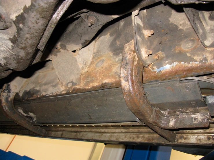 - Пороги и ходовая. Помимо порогов и закрытых профилей, ржавчина также развивается на элементах шасси.