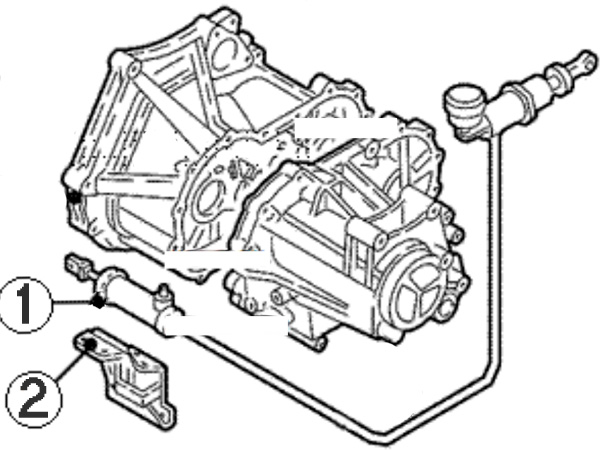 Гидропривод сцепления (1) может выйти из строя из-за поломки удерживающего его кронштейна (2). Замена гидропривода обойдется в 8-10 тыс. рублей.