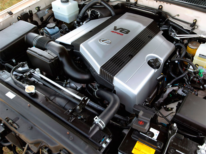 У Lexus LX470 UZJ100 2005 4.7 AT установлен V-образный, 8-цилиндровый, бензиновый двигатель с объемом 4.7 литра 2UZ-FE.