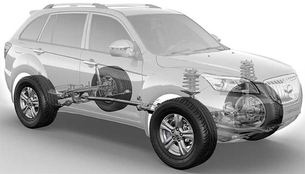 Подвеска Lifan X60 имеет сходство с конструкцией Тойота РАВ4 II. На передней оси установлены стойки Макферсон, а на задней – многорычажные подвески.