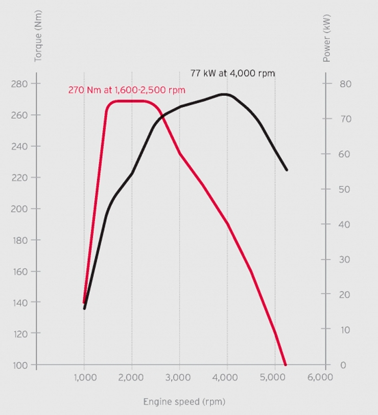 – 105 лошадиных сил и максимальный крутящий момент 270 Нм;