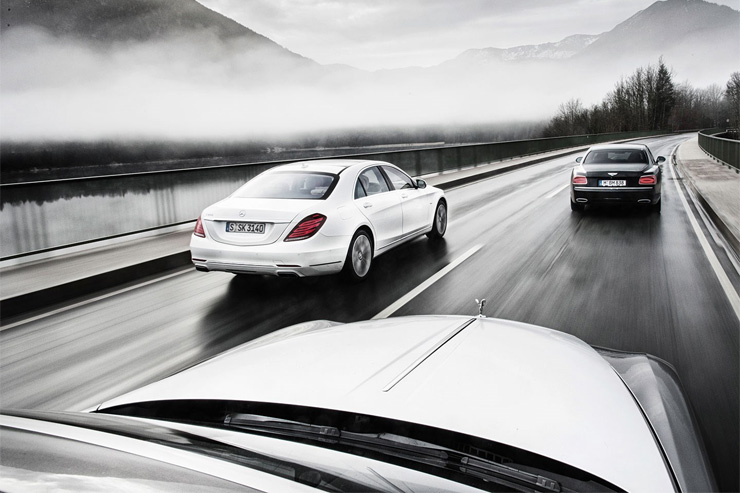 Мы ожидали легкость управления, плавное переключение передач и хорошую настройку подвески. Все это мы получили, хотя в разной степени. Нас удивила общая мощь тормозной системы, оснащенной крупными дисками, которых достаточно для справки даже с тяжелым автомобилем. Bentley, оснащенный по желанию углеродно-керамическими тормозными дисками и обутый в 21-дюймовую летнюю резину, эффективно справляется с кинетической энергией на высоких скоростях, обеспечивая динамическое торможение без потерь. Преимущество весом в 300 килограммов у S600 компенсируется сокращением тормозного пути и временем реакции. Даже Rolls-Royce, уделяющий больше внимания стилю и комфорту, гордится мощной и хорошо сбалансированной тормозной системой. Для запуска процесса торможения достаточно легкого нажатия на педаль. Еще одним общим достоинством наших гигантов является непоколебимая устойчивость на курсе. Все три модели практически не подвержены воздействию поперечных ветров, плохой погоды и изменениям на дороге. Резкие повороты также не составляют проблему, хотя нашей 36-цилиндровой автоколонне приходилось резко замедляться при каждом крутом повороте.