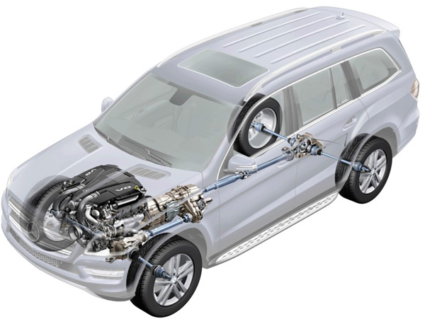 Вес Mercedes GL снизился на 90 кг. Это было достигнуто, в том числе, за счет использования алюминиевых рычагов подвески, передних крыльев и капота, а также магниевого поперечного усилителя кузова под передней панелью.