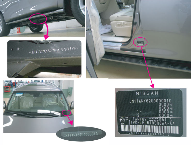 Идентификационный номер VIN можно найти справа на раме под дверью переднего пассажира, на лобовом стекле со стороны водителя и на табличке, приклеенной внизу средней левой стойки кузова.