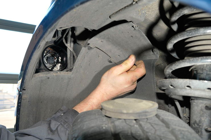 Для доступа к одной из ламп фары следует обратить внимание на колесные арки, где расположены специальные заглушки. В случае использования ксеноновых фар, необходимо обратить внимание на лампу дальнего света Н7, а при использовании обычных фар – лампочку ближнего света Н1, расположенную на внешней стороне.