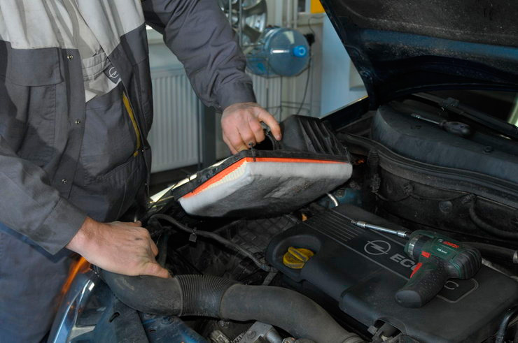 Почти в каждой модели автомобиля корпус воздушного фильтра двигателя находится справа в моторном отсеке. Для замены не требуется специального инструмента. Просто отсоедините патрубок от расходомера, открутите 5 винтов, и вы получите доступ к фильтру. Перед установкой нового фильтра не забудьте тщательно очистить корпус. Обычно после 10 замен приходится заменить саморезы на болты с гайками – конечно, после сверления отверстий в месте резьбы.