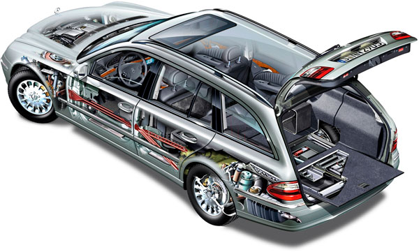 На задней оси универсала Мерседес Е-класса установлена пневматическая подвеска, обеспечивающая комфорт при любых условиях эксплуатации. Дополнительные особенности, такие как два больших отсека под полом багажника и электропривод задней двери, повышают функциональность автомобиля. Хотя не все опции входят в стандартное оснащение, большинство моделей поставляются весьма комплектными, включая варианты с семью посадочными местами.