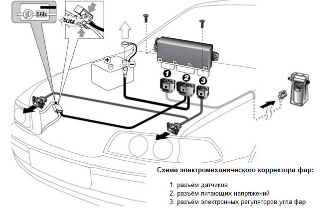 Регулировка угла наклона фар в зависимости от нагрузки