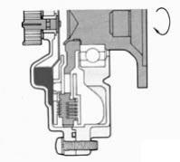 Снижение температуры набегающего воздуха приводит к постепенному возврату биметаллической пластины в исходное положение. Соответственно, уменьшается проходное сечение впускных клапанов, жидкость перегоняется в резервную полость. Уменьшение коэффициента сцепления приводит к увеличению разницы частоты вращения приводного вала вискомуфты и корпуса – крыльчатка вентилятора замедляется.