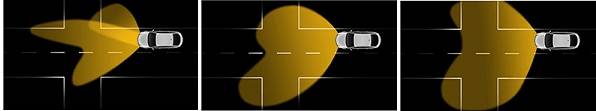 Статическая регулировка. В этом режиме освещение обочины при поворотах достигается за счет включения отдельной лампы с внутренней стороны поворота. Функция активируется при включенном ближнем свете и скорости до 50 км/ч. После завершения маневра лампа автоматически выключается.