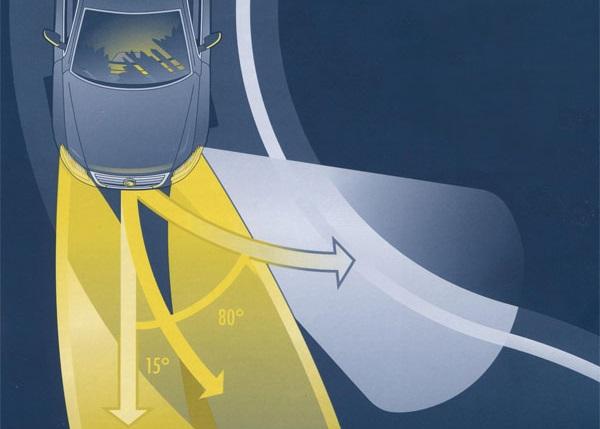 Автомобиль с адаптивными фарами оснащен электронными сенсорами, которые определяют скорость движения и угол поворота руля. Датчики активируют небольшие блоки питания, встроенные в корпус лампы, и задают им направление освещения.