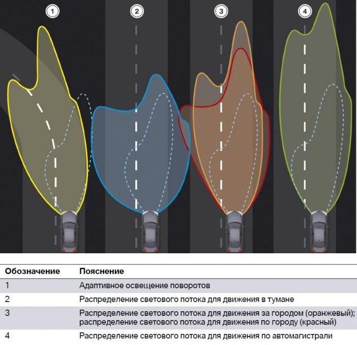 Адаптивное освещение позволяет не только автоматически управлять дальним/ближним светом фар и заглядывать внутрь поворотов, но и регулировать интенсивность света в зависимости от погодных условий. Функция крайне полезная в туман (сильный дождь, снег), когда за счет автоматического уменьшения дальности световых лучей удается минимизировать блики и избежать эффекта туманной стенки.