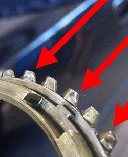 На блокирующем кольце синхронизатора и шестернях имеются зубцы специальной формы, с которыми при переключении скоростей входит в зацепление муфта. Если шлицы муфты, зубцы на кольце и шестерне стачиваются, то при нагрузке, отпускании педали газа, происходит самопроизвольное выключение передачи. Ограничиться заменой синхронизаторов в таком случае не получится, обязательно стоит менять и шестерню поврежденной передачи, муфту переключения передач.