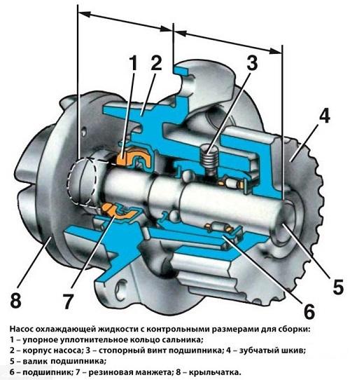 Критически важно использовать качественный антифриз для долговечности сальника. Резиновые уплотнители в области контакта с приводным валом нуждаются в смазке, что не происходит при использовании агрессивного тосола или воды.