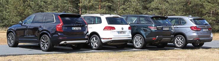 При проверке динамики движения обычно выделяют Touareg или Х5. Великолепная мощь мюнхенского автомобиля и интуитивное управление вольфсбургского автомобиля задают тон всем другим внедорожникам этого класса. Volvo решила удивить всех, стремясь к лидерству. Шведы не только показывают лучшее время благодаря шинам ContiSport-Contact, но даже при длинной колесной базе уверенно маневрируют между конусами слаломной трассы.