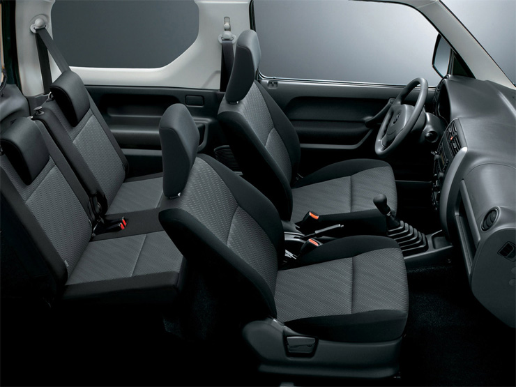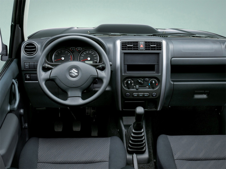 В салоне преобладают материалы среднего качества, а сиденья не обеспечивают достаточного комфорта. Внутри Джимни довольно тесно. Ширина салона составляет всего 1260 мм, что на 25 см уже, чем у автомобилей гольф-класса. Длительная поездка задаст трудности задним пассажирам.