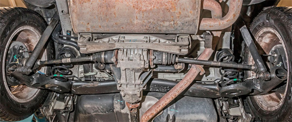 Кузов автомобиля хорошо защищен от коррозии, однако в старых машинах ржавчина может появиться снизу – на элементах шасси, держателях глушителя и задней балке.