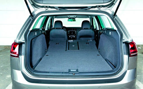 Интерьер Варианта не вызывает нареканий: качество материалов и внешний вид на высоте. Все сиденья обеспечивают отличную боковую поддержку. Объем багажника Варианта значительно превосходит обычный Гольф. За гигантской задней дверью можно разместить от 605 до 1620 литров груза. Складывание задних сидений происходит легко, образуя ровный пол. Максимальная грузоподъемность – 489 кг.