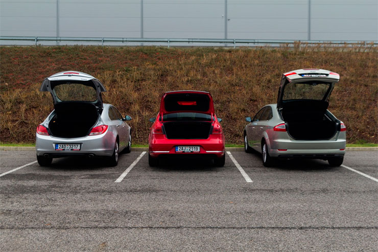 С практической точки зрения, Фольксваген Пассат формально уступает другим моделям из-за стандартного седана. Однако его багажник является самым вместительным – 565 литров, в то время как у Форда – 540 литров, а у Опеля – 530 литров.